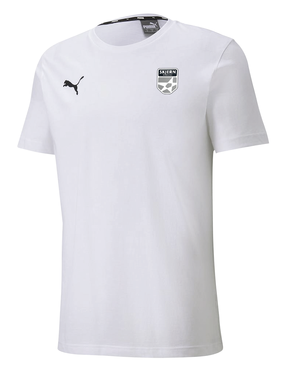 Skjern Håndbold T-shirt til voksne i hvid med sølv badge på venstre bryst.