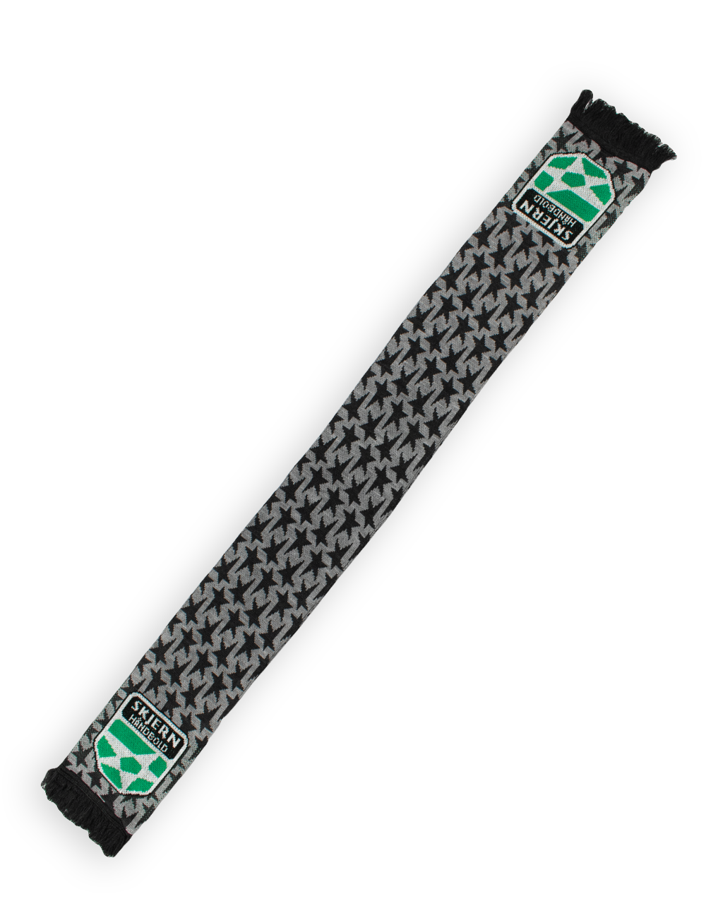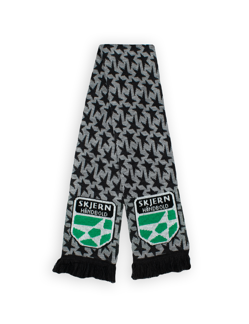 Et simpelt og varmt halstørklæde med Skjern Håndbolds stjerne i fokus. Halstørklædet er lavet med en masse stjerner i to grå nuancer, og selve Skjern Håndbold logoet i den grønne Skjern farve.